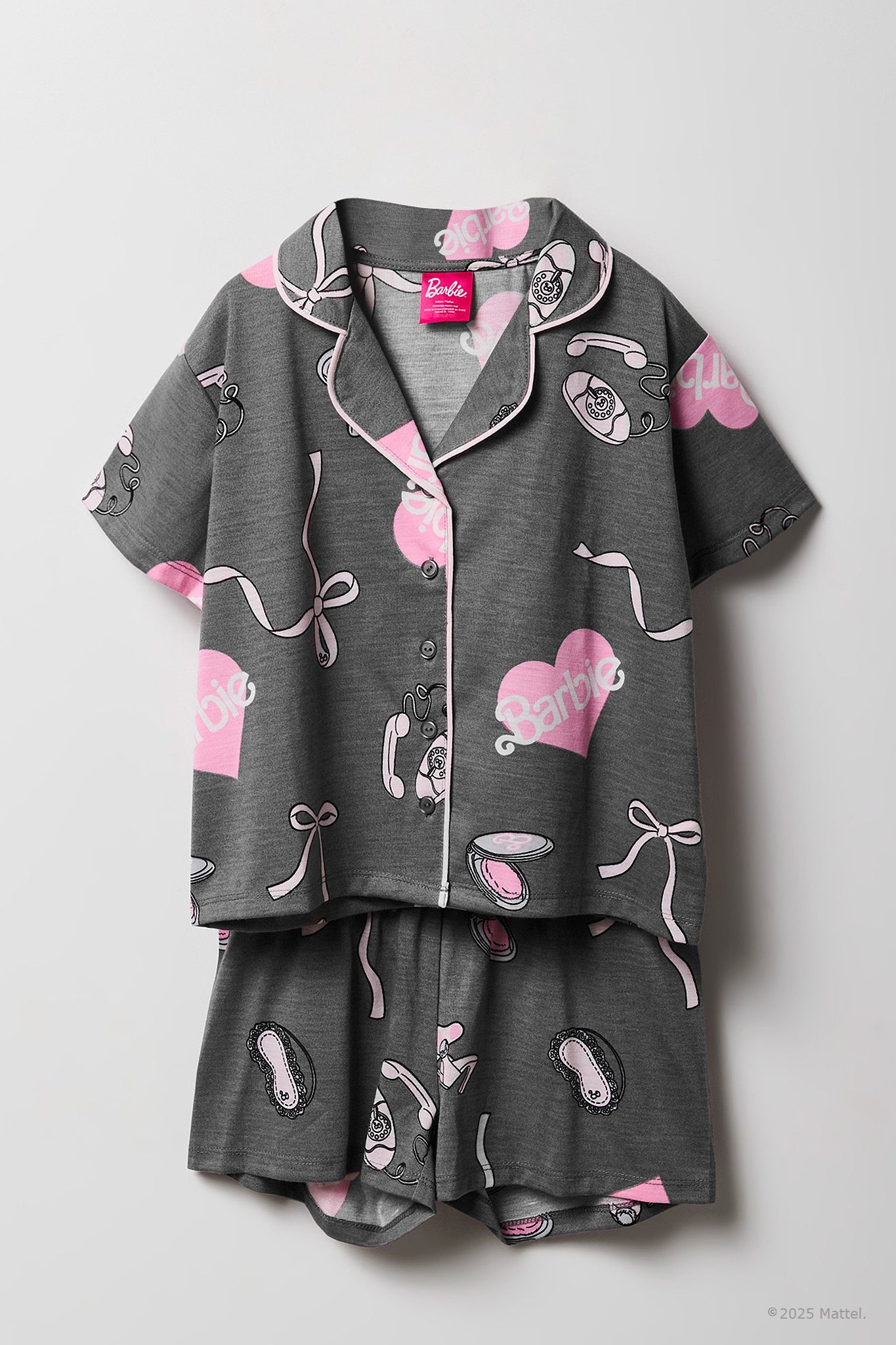 Barbie™ Girls Printed Button-Up Top & Short Pajama Set