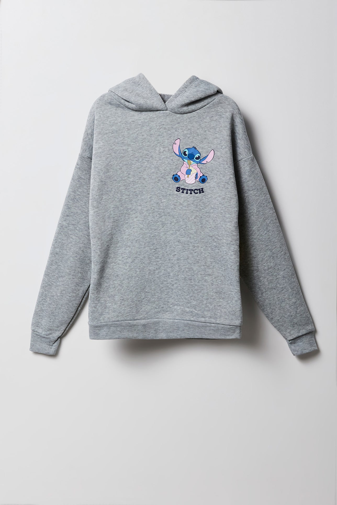 This hoodie features fleece material, puff print front & back, hood, long sleeves, and ribbed knit trim. Pair with our Girls Stitch Graphic Fleece Wide Leg Sweatpant to complete the look