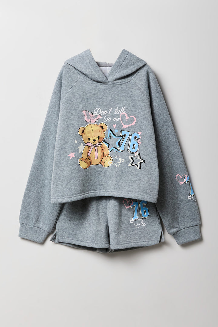 Ensemble avec haut à capuchon en molleton imprimé et short pour fille