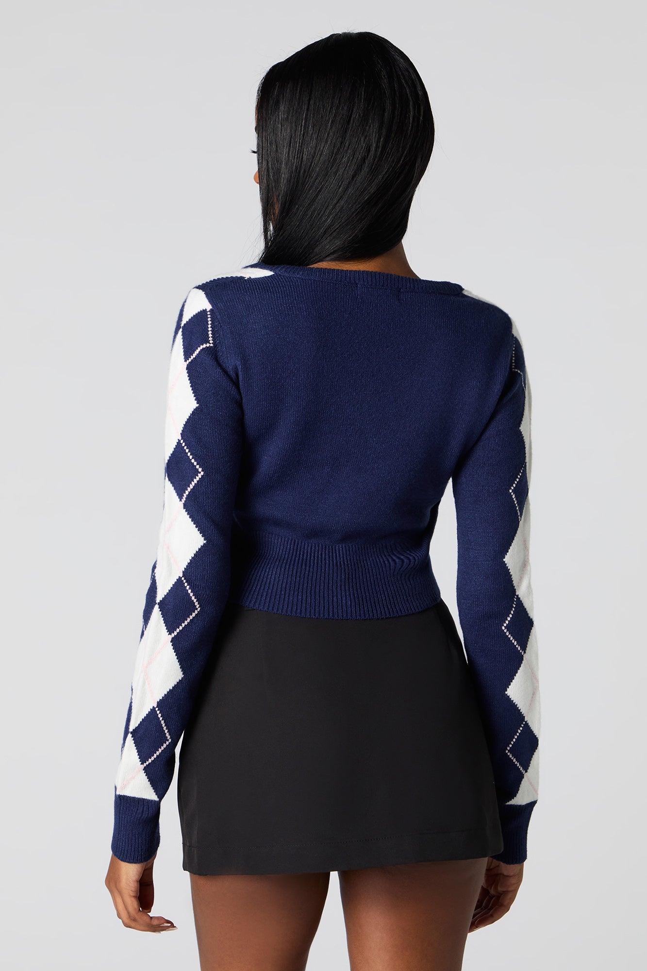 Chandail écourté à losange et col en V