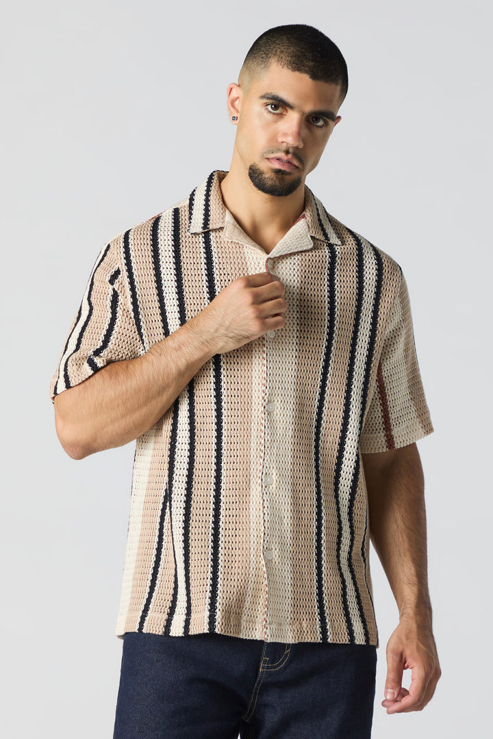 Haut texturé boutonné rayé