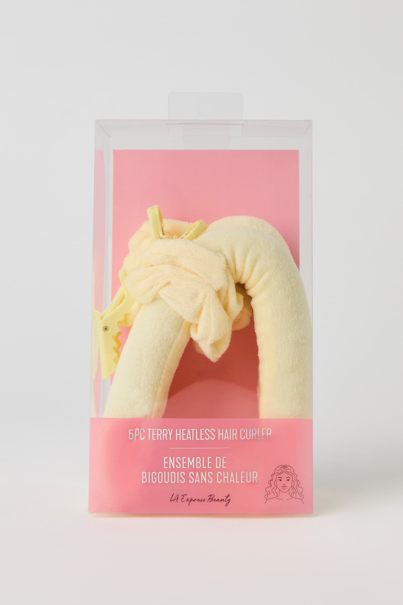 This 5-piece set comes with 1 heatless curling rod, 2 alligator clips, 2 and 2 scrunchies.